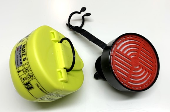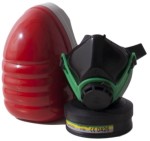 Flyktmask 15 Flyktmask i halvmaskutförande. Kapslingen har bältesfäste. Klarar en längre tid för evakuering.